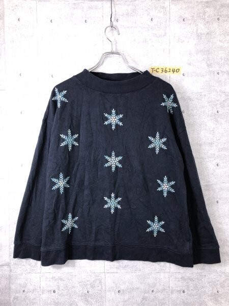 - TALBOTS タルボット レディース 雪の結晶 刺繍 インド製 スウェットトレーナー L 紺