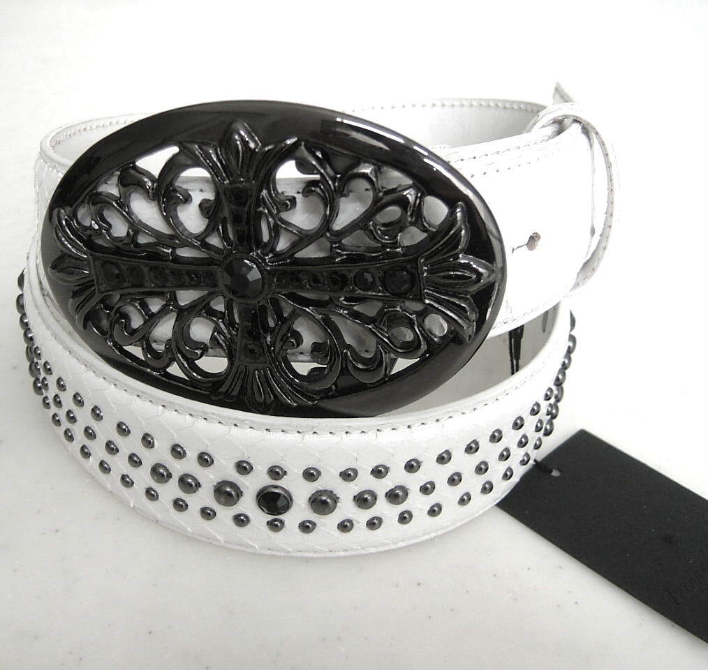 - 新品 トルネードマート TORNADO MART オーバルTOPスタッズスネークベルト 白ホワイト L 本革レザー 163