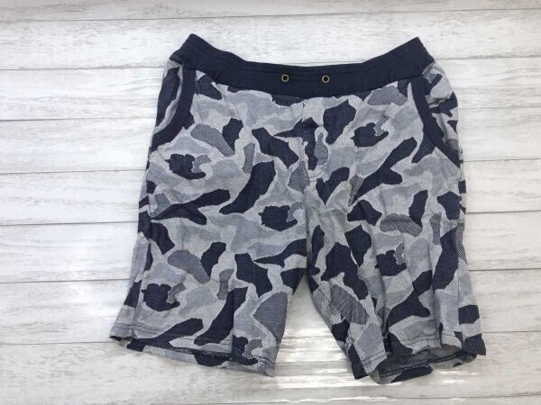 > Edition's レトロ アメカジ サーフ ストリート 迷彩カモフラージュ 総柄 スウェット イージー ショート ハーフ パンツ ボトムス メンズ 青