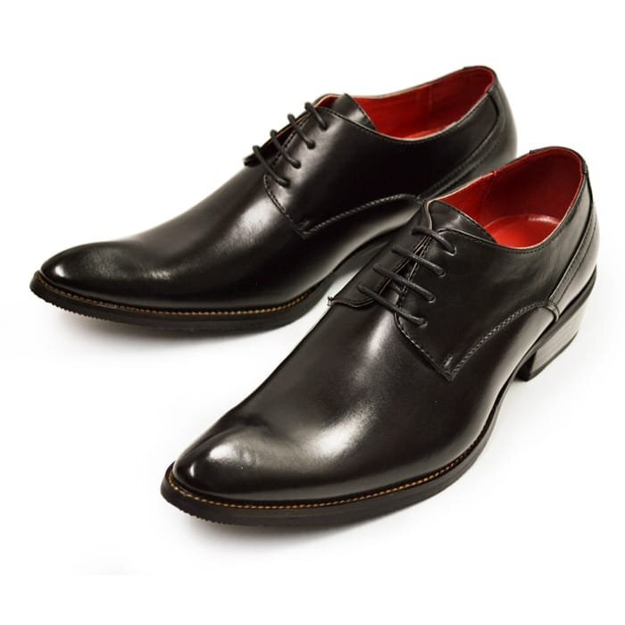 - 新品◆訳あり【24.5cm】ビジネスシューズ 紳士靴 4.5cmヒール メンズ 革靴 レースアップ プレーントゥ 脚長 フォーマル オフィス 冠婚葬祭