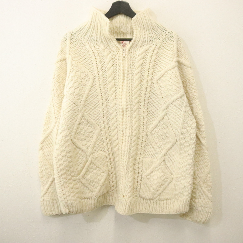 - y529 80sビンテージ YARINA ウールニットセーター■1980年代製 XLサイズくらい レディース アイボリー フルジップ ケーブル編み 古着 激安