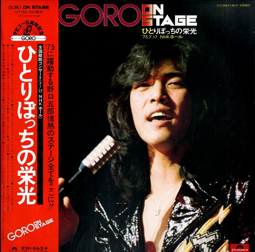 A00372329/LP2枚組/野口五郎「Goro On Stage ひとりぼっちの栄光 75.7.17 NHKホール (1975年・MR-9148/9)」