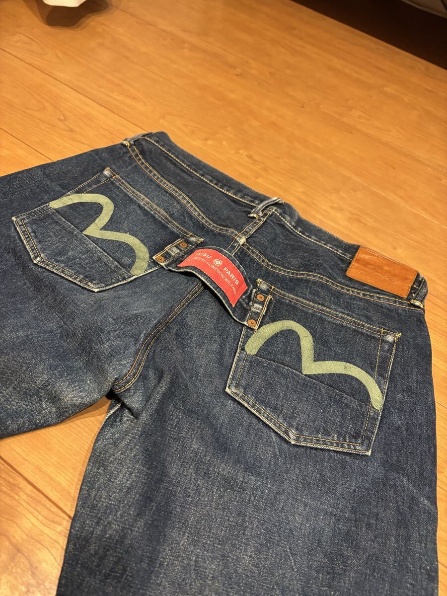 - エヴィス EVISU PARIS グリーンカモメ セルビッジ虎耳 チェーンステッチ