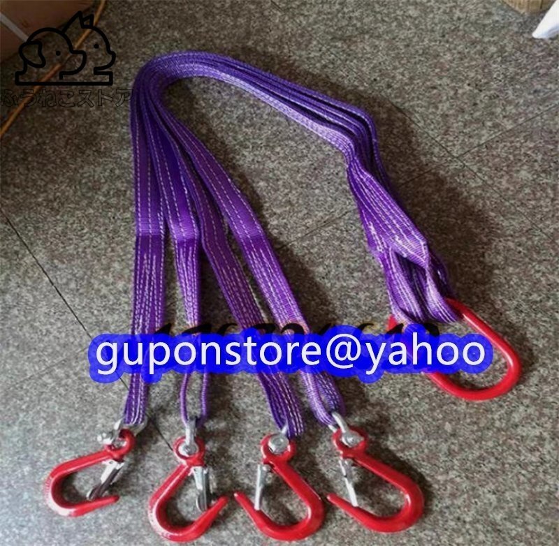 - 強くお勧め荷吊り 長さ1M 4点吊り 運搬作業用ベルトスリングスリングベルト ポリエステル製 合金鋼製フック付き リング付き 最大使用荷重2t