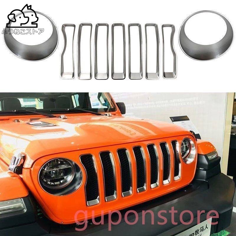 > シルバーメッシュ グリル インサート + ヘッドライト カスタム 高品質 ジープラングラー JL 2018 2019 アクセサリー