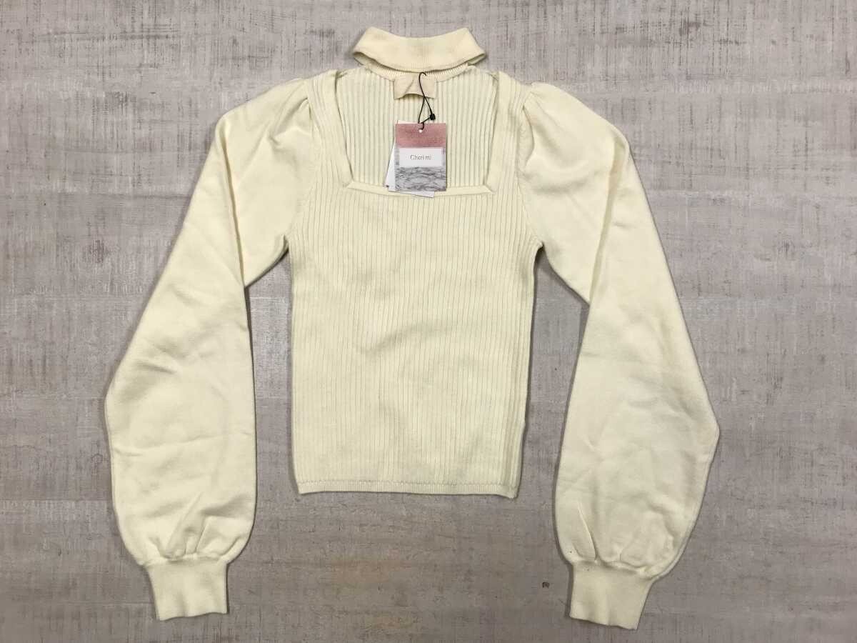 - 新品 シェリミー Cheri mi 伊藤桃々 姫ギャル セクシー スクエアネック デコルテ開き モックネック ボリューム袖 ニット レディース F 白
