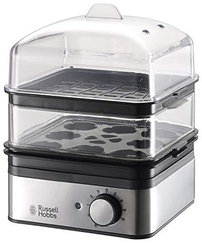 - 大石アンドアソシエイツ ラッセルホブス 蒸し器 電気 スチームクッカー ゆで卵器 タイマー付き 【レシピ付き】 2段 放置するだけでOK シル