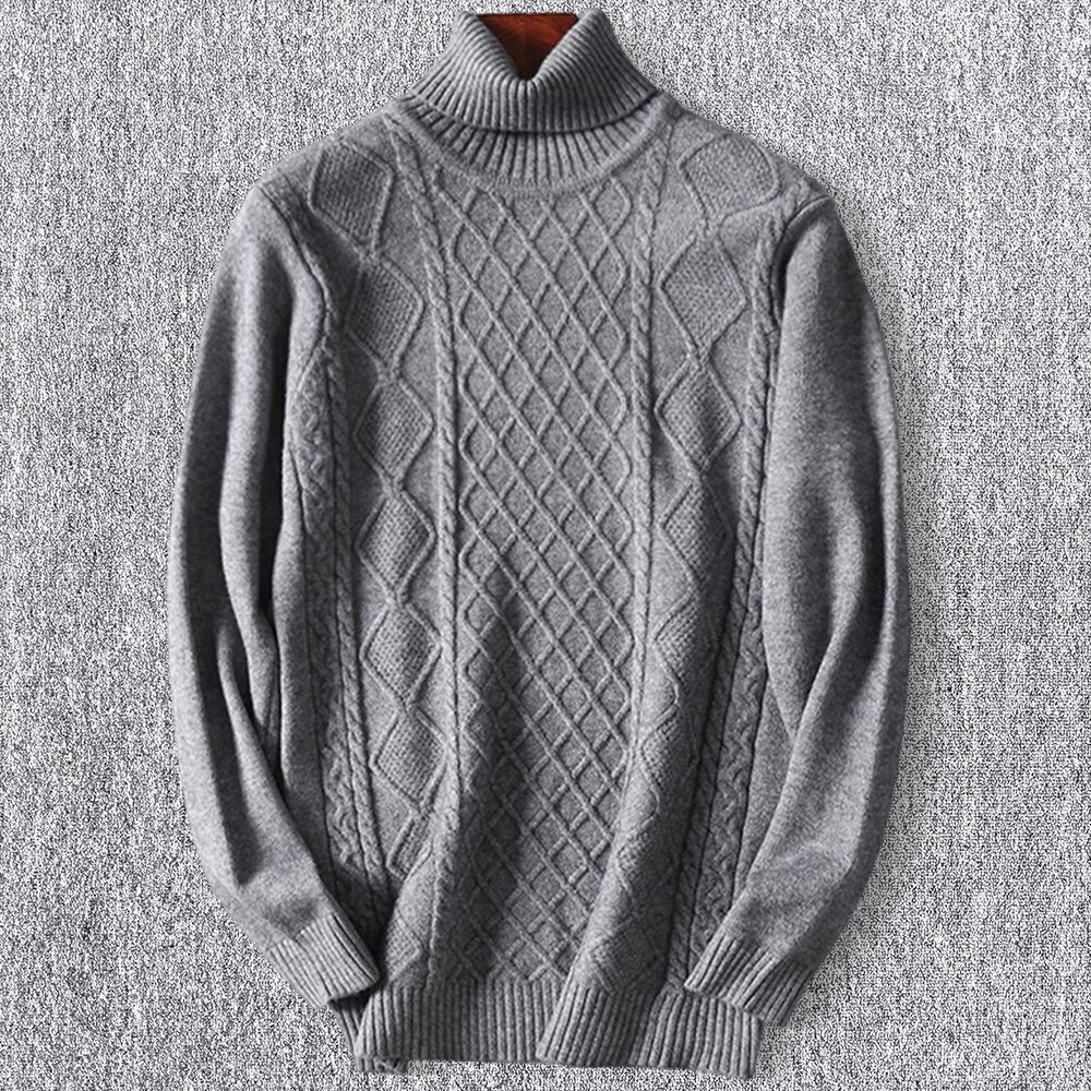 - 新品 DCKMANY ウール混 ジャガード リブニット ケーブル セーター タートルネック メンズ 秋冬 暖かい プルオーバー 灰 T9024 L-XL程度