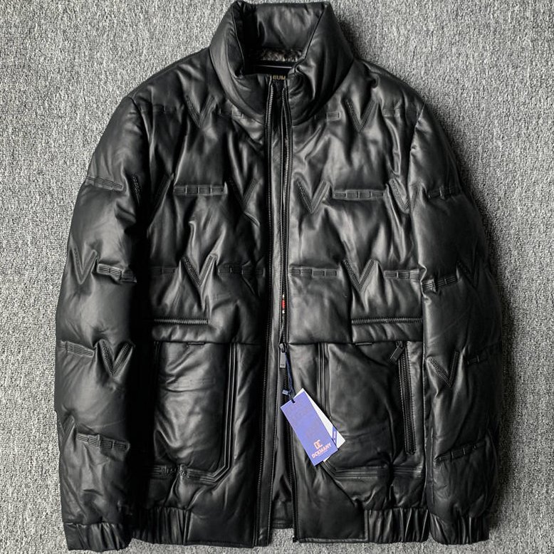 - 贅沢の極み 新品 DCKMANY イタリアレザー ダウンジャケット メンズ スイングトップ 羊革 ライダース 革ジャン 極地防寒 冬服 黒 E608-XL