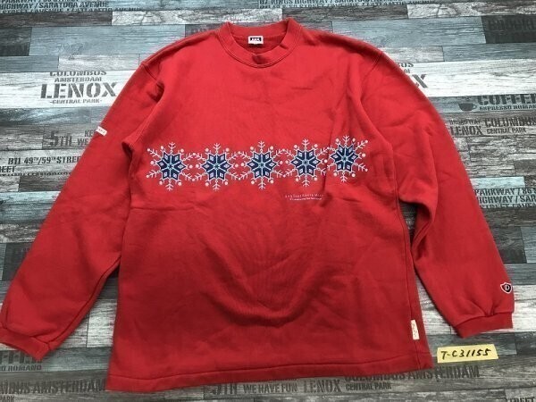 - DOG DEPT サンタモニカ メンズ 雪の結晶プリント スウェットトレーナー 2 赤