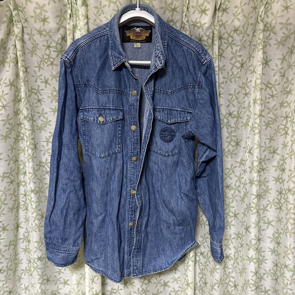 > 【ハーレー純正】長袖デニムシャツ表記サイズL Harley-Davidson ビンテージ ブルー H.D.C