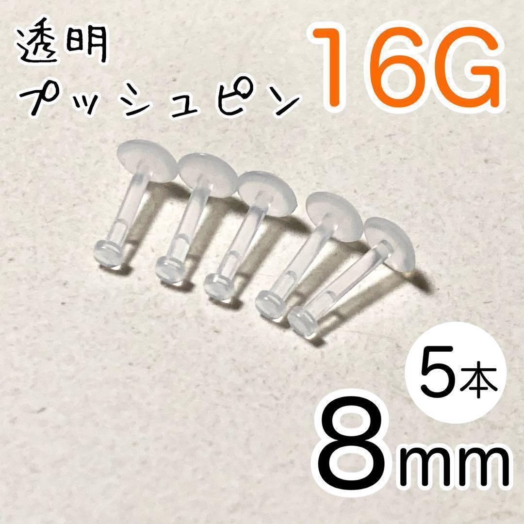 - 16G 5本 透明プッシュピン 樹脂ピアス 長さ8mm シークレットピアス