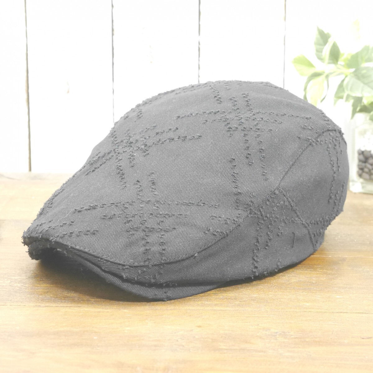 - 全国一律送料450円 ステッチ 破れ ハンチング ブラック シンプル サイズ調整可 オールシーズンOK 男女兼用