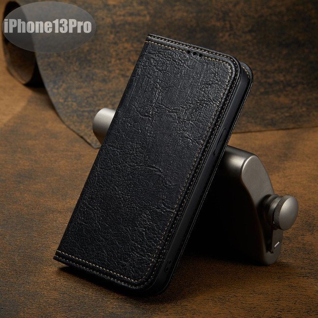 > iPhone13PRO ケース PUレザー おしゃれ スマホケース スマホカバー ブラック 耐衝撃 衝撃吸収【n279】