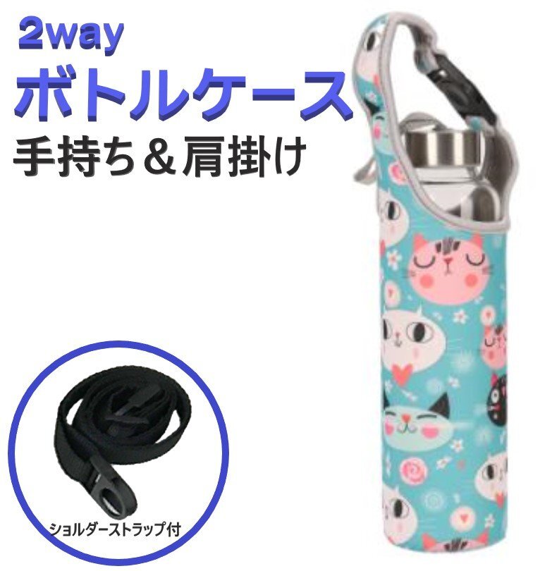 - 水筒カバー ボトルカバー カラーE 肩掛け ネオプレン素材 子供 500ml ペットボトル 600ml 保冷 保温 ストラップ ホルダー ショルダー