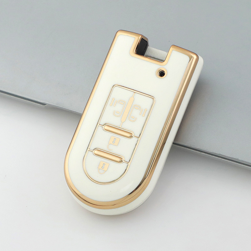 - ダイハツ スマートキーケース 4ボタン TPU素材 キーカバー 両側スライドドア 高級ゴールドフレーム
