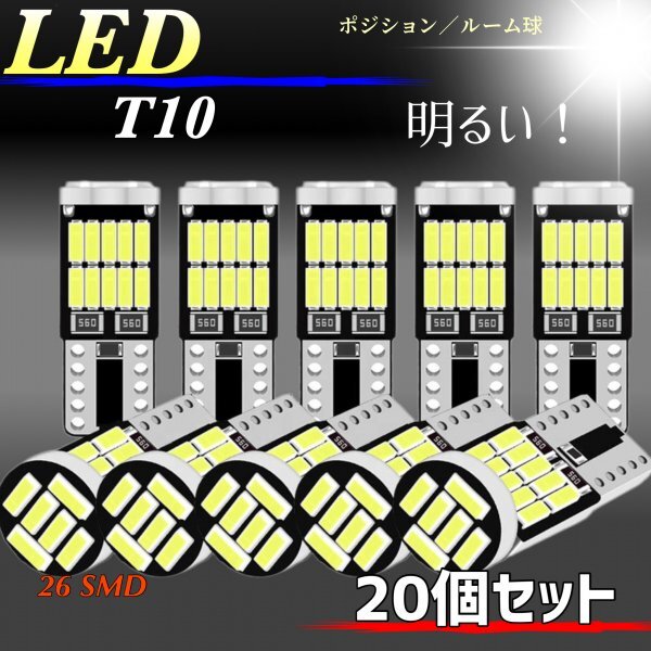 - T10 T16 LED バルブ ホワイト 20個 12V 26SMD 6000K CANBUS キャンセラー ポジション ナンバー灯 メーター パネル球 明るい 爆光 車検対応