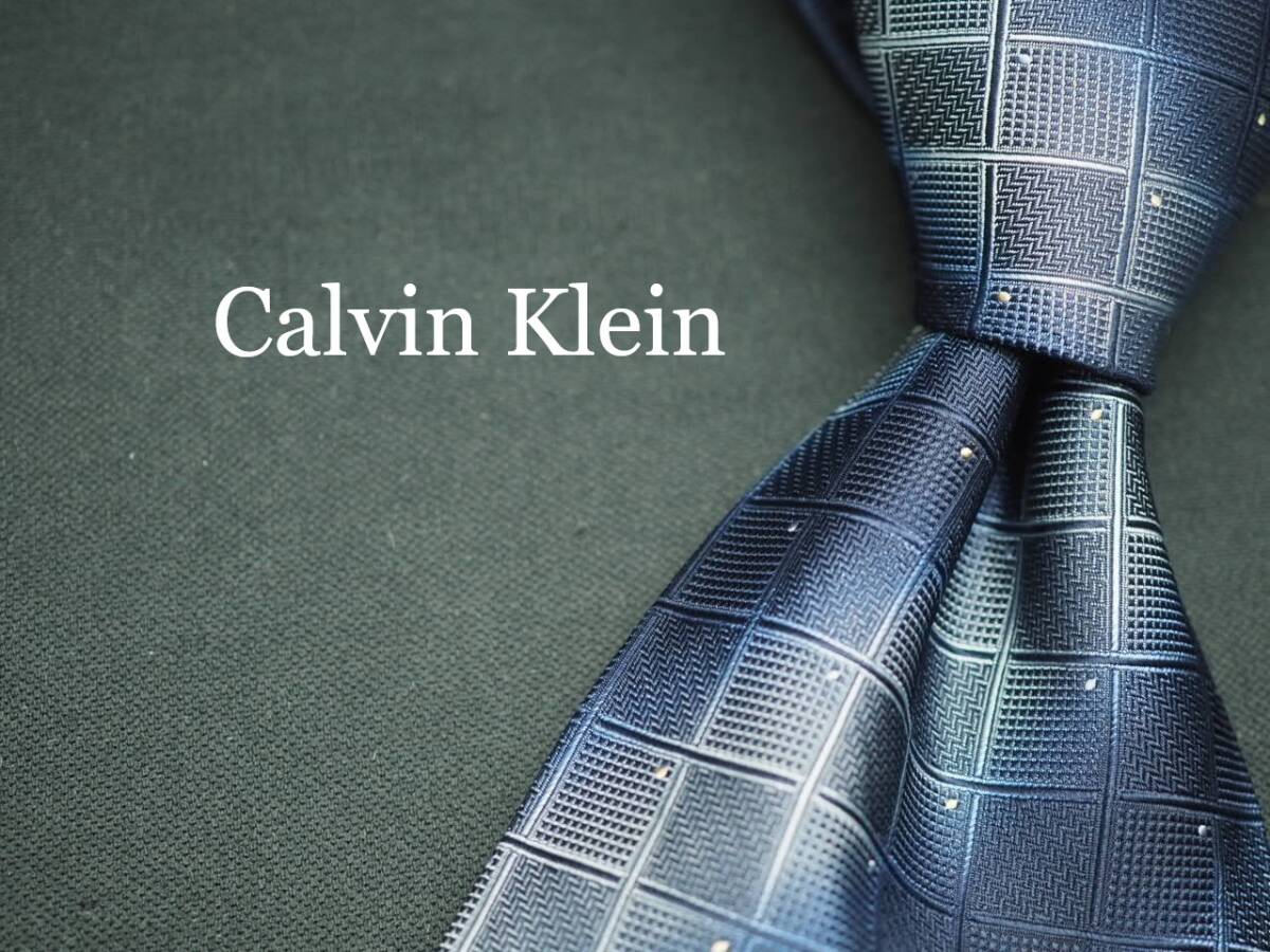 > 美品【Calvin Klein カルバンクライン】 G1001 ネイビーグレー系 SILK ブランド ネクタイ 古着 良品 転売 仕入