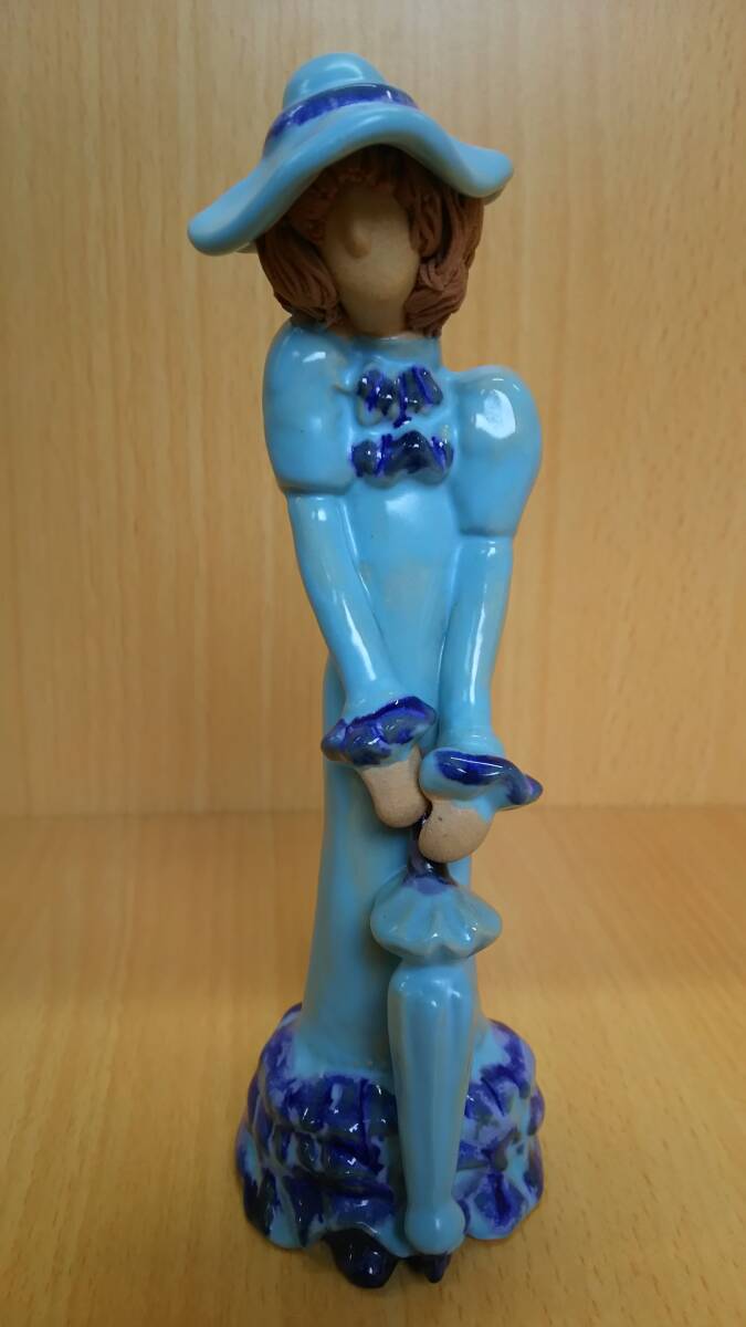 - 【菊水-785】(E)陶器人形/青いドレスと傘を持った女性/フィギュリン/置物/オブジェ/インテリア(yu)