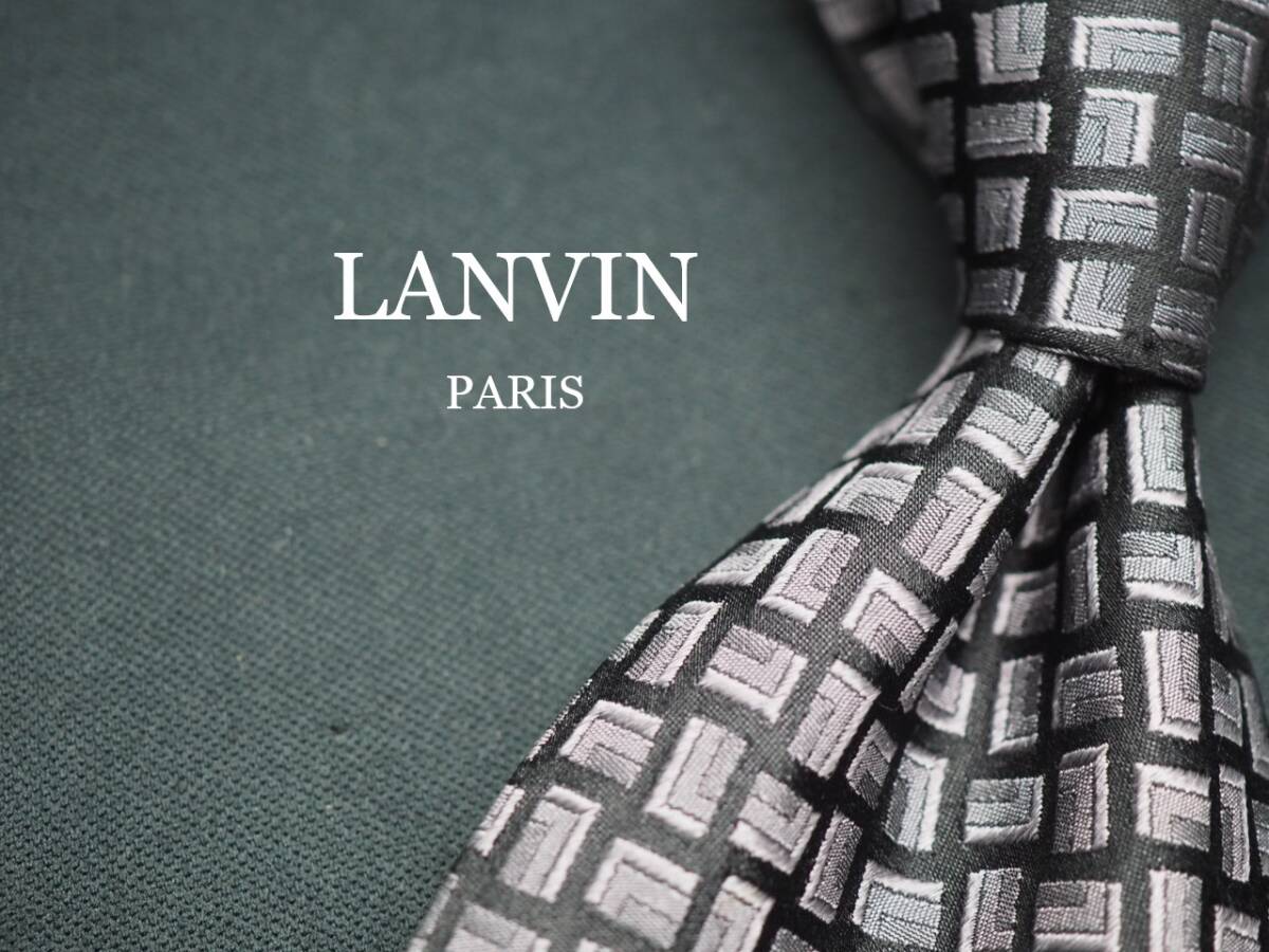 - 美品【LANVIN ランバン】 G1075 グレーブラック系 SILK ブランド ネクタイ 古着 良品 転売 仕入