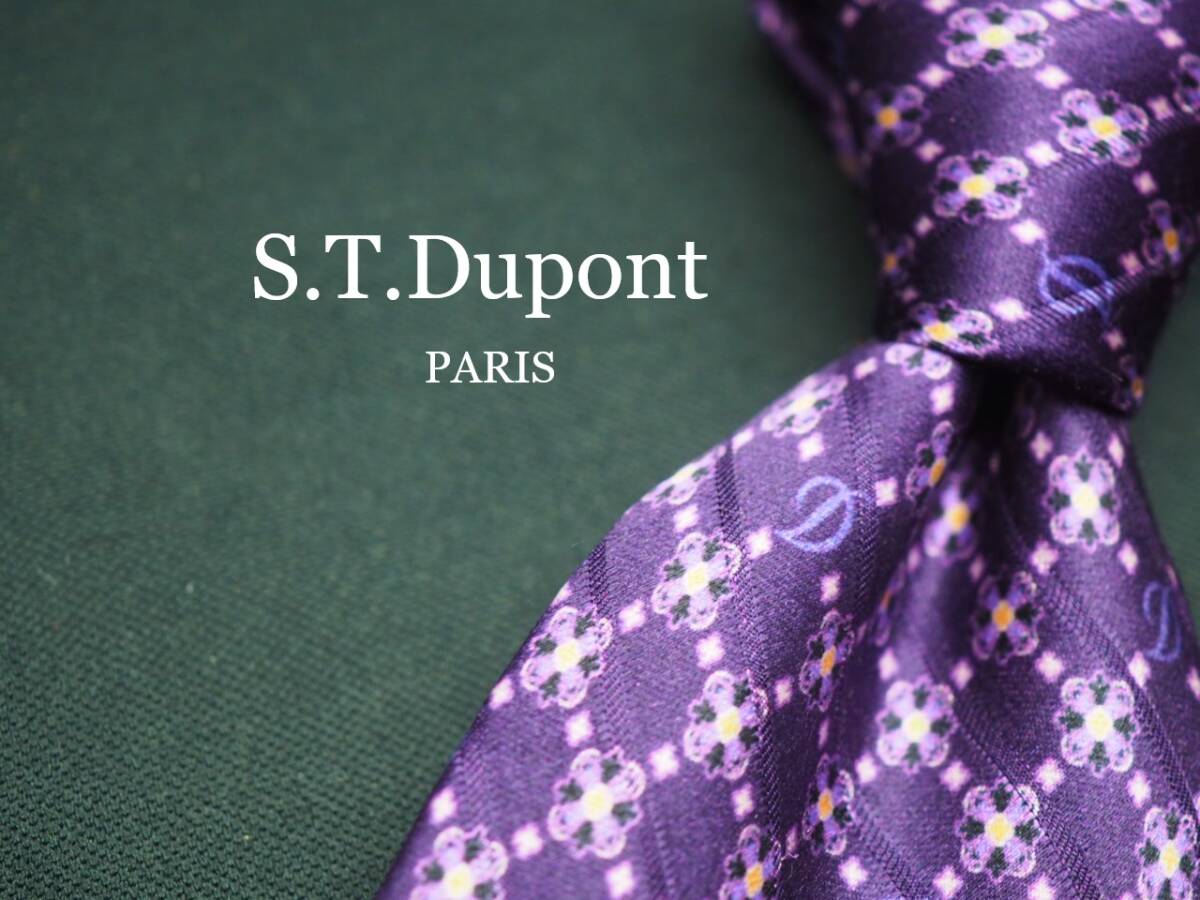 - 美品【S.T.Dupont デュポン】 G1105 ロゴ パープル系 SILK ブランド ネクタイ 古着 良品 転売 仕入