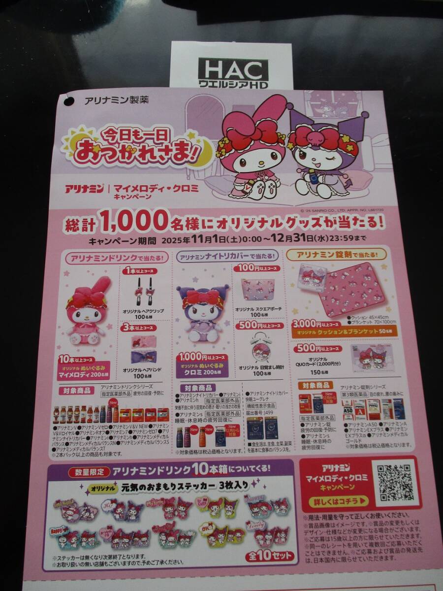 - 懸賞 応募 アリナミン マイメロディ クロミ オリジナル ヘアクリップ 当たる レシート ハガキ