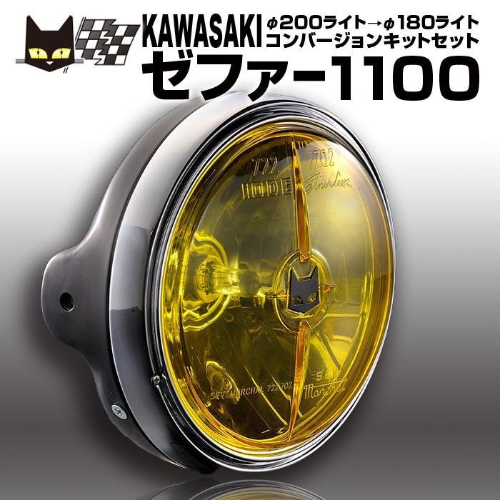 - カワサキ ゼファー1100 φ200ライトに装着【送料無料】マーシャル722・702 イエローレンズ 黒ケース 汎用フルキットセット 8415/6038