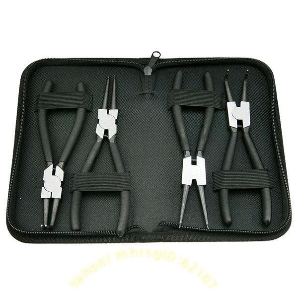 - 黒収納ポーチ付き スナップリング プライヤー 4pcセット 軸用&穴用