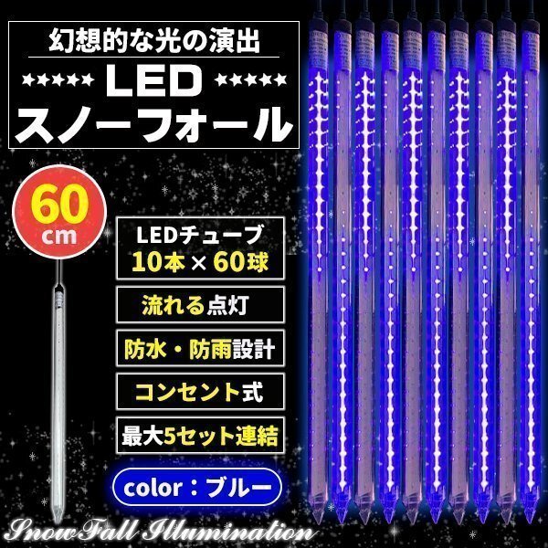 - イルミネーション 屋外用 つらら スノーフォール 10本 60cm コンセント式 防水 ブルー