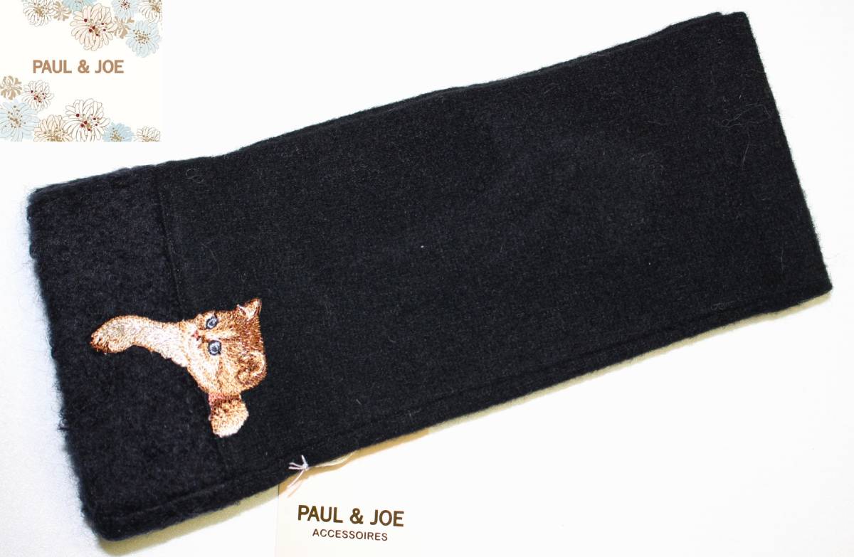 > PJ-6 新品本物即決 指なし手袋 PAUL&JOE ポールアンドジョー 黒 レディース猫フィンガーレスグローブ有名ブランド婦人用プレゼント等