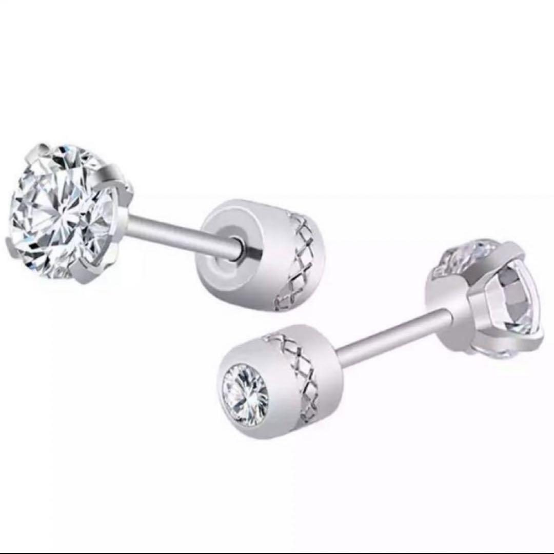 - 2way ステンレスピアス 5mm アレルギー対応 ネジ式キャッチ ジルコニア
