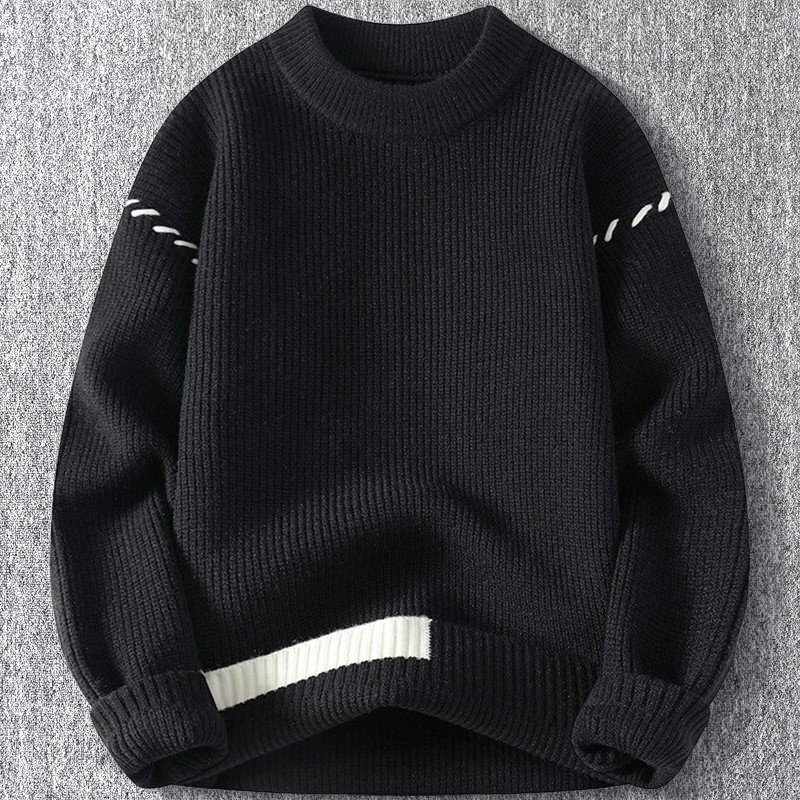 - 新品 DCKMANY ウール混 クルーネック ニットセーター メンズ 秋冬 リブ編み 配色 厚手 暖かい 長袖 プルオーバー トップス 黒 T5215-M