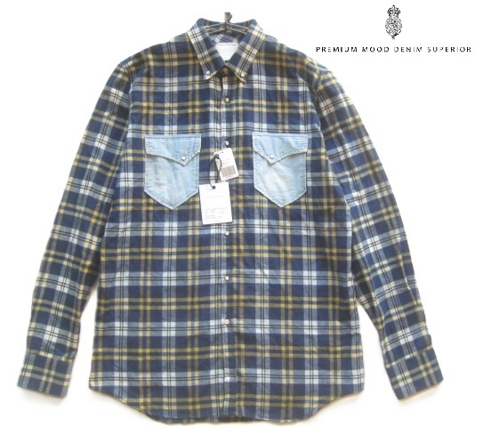 > 新品イタリア製!!PREMIUM MOOD DENIM SUPERIOR P.M.D.S ピーエムディーエス*定価3万 チェック柄コットンフランネルボタンダウンシャツ L