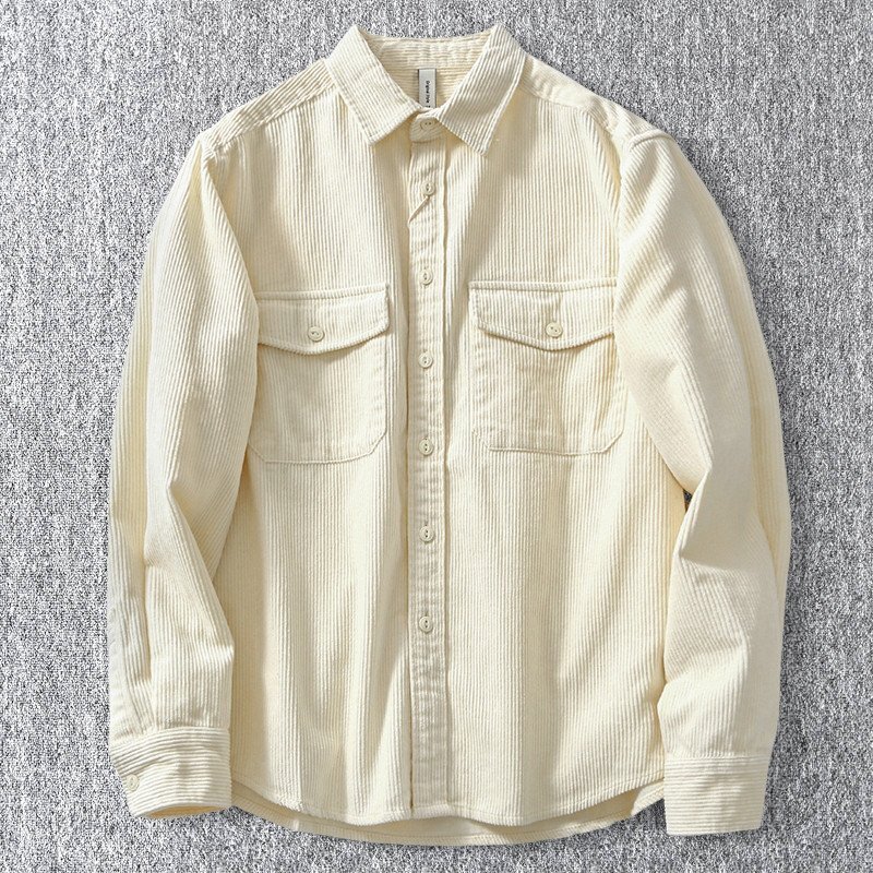 - 新品 DCKMANY コーデュロイ 長袖シャツ メンズ 綿100% 厚手 春秋冬 胸ポケット 春夏 カジュアル シャツジャケット ベージュ T8050-M