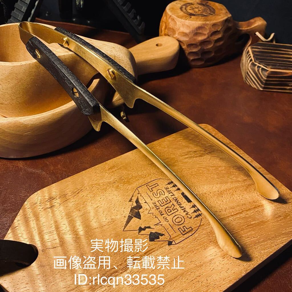 - キャンプ ステンレス製ゴールド キッチントング シリコン 木製断熱ハンドル 調理トング 焼き肉 調理器具 トング バーベキュー アウトドア
