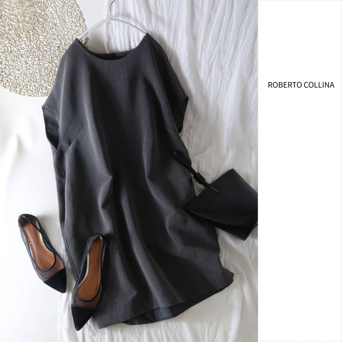 - 超美品☆百貨店購入/ロベルトコリーナ ROBERTO COLLINA☆イタリア製☆洗える バックタック コクーンワンピース Lサイズ☆R-O 6140