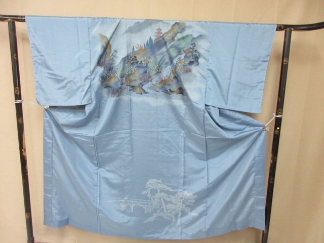 - 1円 中古 長襦袢 正絹 男性用 和装 和服 森林 立木 五重塔 遠山 風景 高級 渋カッコいい 身丈142cm 裄67cm【夢職】★