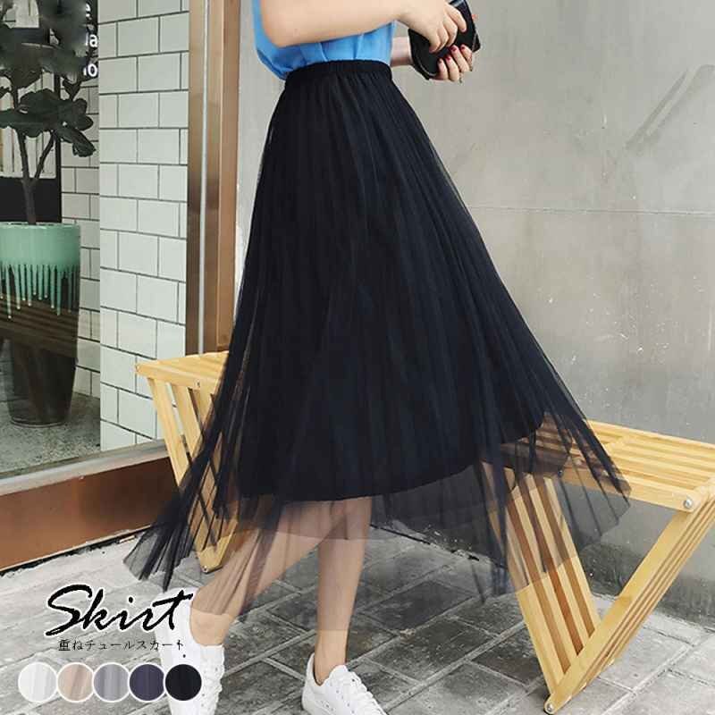 - チュール フレアスカート Aライン ロング丈 フリー ベージュ