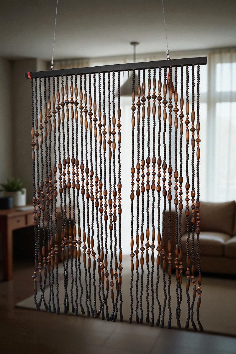 title:可愛い玉暖簾 のれん ウッドビーズ 3段のM模様 レトロポップ 昭和 ナチュラル ヴィンテージ  古道具のgplus広島 2511i