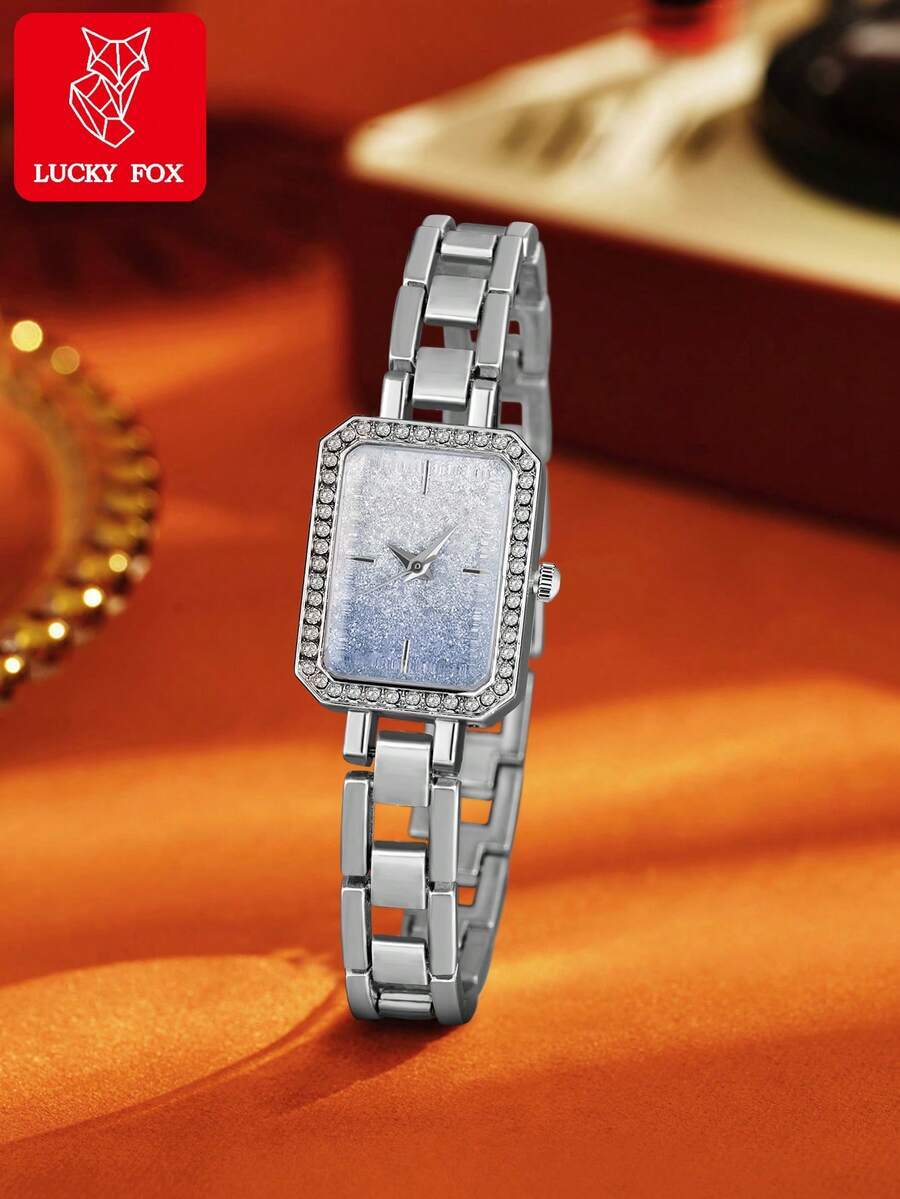 > 腕時計 レディース クォーツ 1個 レディース スクエア ラインストーン グラデーション ダイヤル クォーツ 腕時計、エレガント