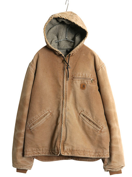 - US企画 カーハート ダック シエラ ジャケット メンズ L 程 ワーク フルジップ フード パーカー 裏 ボア パイル フリース ブルゾン ブラウン