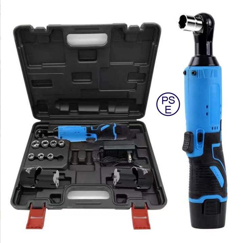 - リチウム電池式ラチェットレンチ、充電式、90 度角電動レンチ、直角曲がりレンチ、電池 2 個と充電器 1 台のセット。
