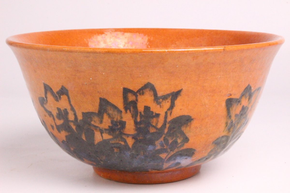 - 「狸庵RS」 初代 一休庵道年(1876~1937) 作 桔梗絵 佐藤翠渓(1884~1926)画 赤楽鉢 「共箱・共布」/ 中村道年 ☆本物保障☆k6tr8f4x