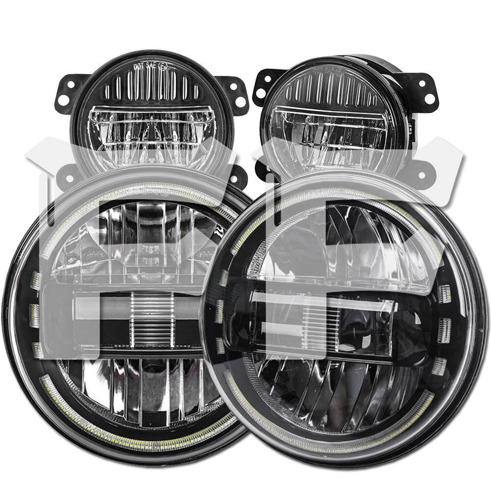 - JP仕様品 Eマーク/DOT 7インチ LED ヘッドライト 4インチ LED フォグランプ HI.Low.DRL ジープ ジムニー JK JKU 新車検対応 ブラック 4個