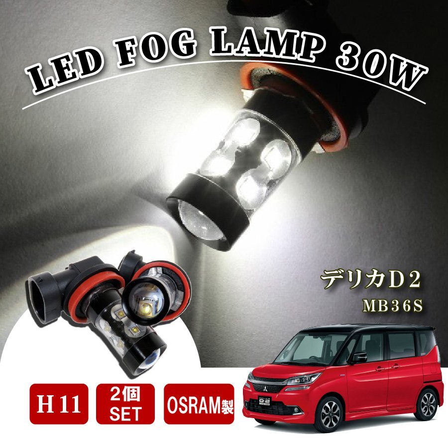 - デリカD2 MB36S H11 LED フォグランプ 60W LEDバルブ バルブ 後付け LEDフォグランプバルブ カスタム パーツ フォグライト