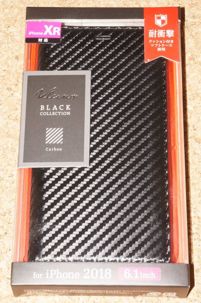 > ★新品★ELECOM iPhone XR レザーカバー カーボン調 ブラック