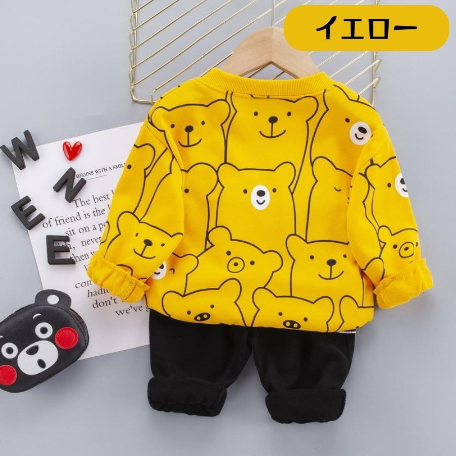 - イエロー 100cm 2点 セットアップ スウェット 上下セット トレーナー パンツ 長袖 アニマル柄 くまさん キッズ服 薄手 ベビー服