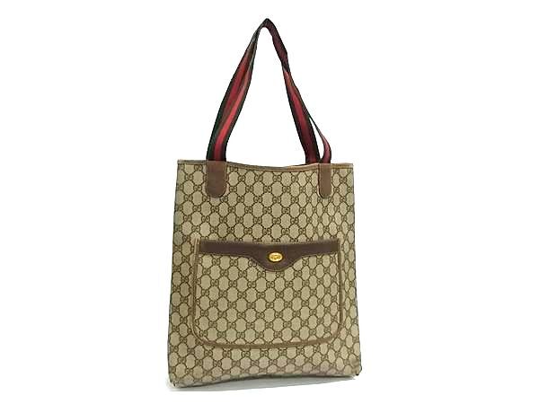 > 1円 GUCCI オールドグッチ 378.02.003 ヴィンテージ シェリーライン GG柄 PVC トートバッグ 肩掛けかばん レディース ブラウン系 GA5841