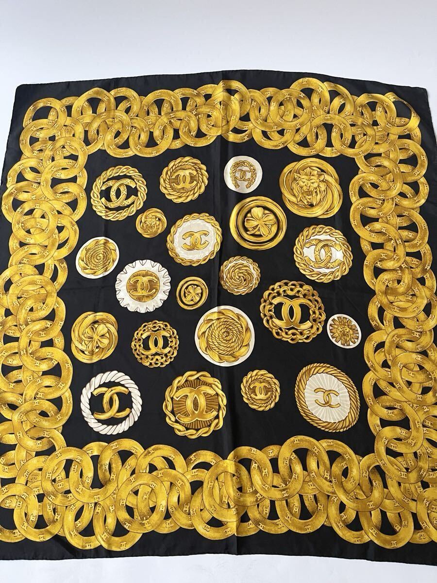 - 1000円~正規品 美品 シャネル CHANEL ココマーク クローバー ライオン カメリア柄 大判 シルク スカーフ ヴィンテージ O-28