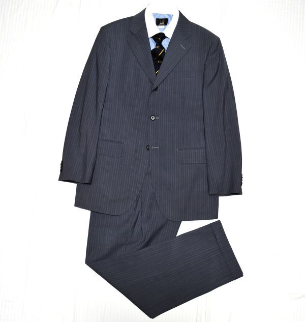 - 6★MITSUMINE★三峰×GUABELLOグアベロ★ グレー&スチールブルーのストライプ 素材こだわり周に差をつける男が選ぶ高級スーツAB6